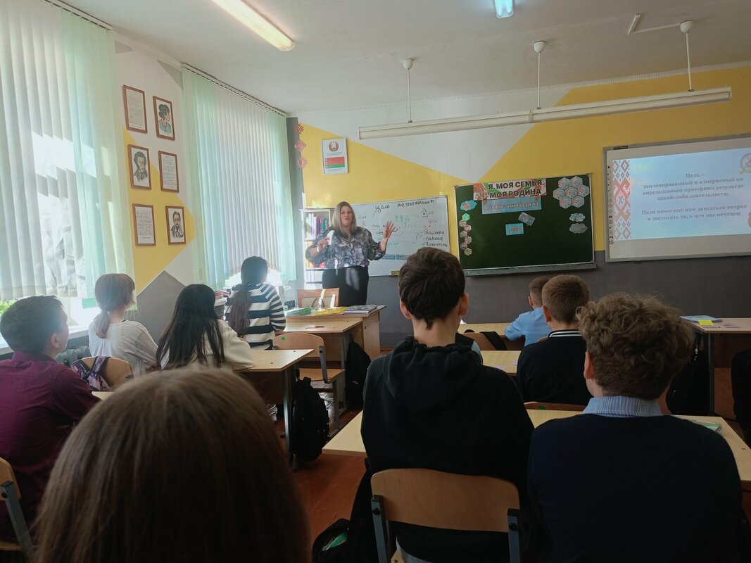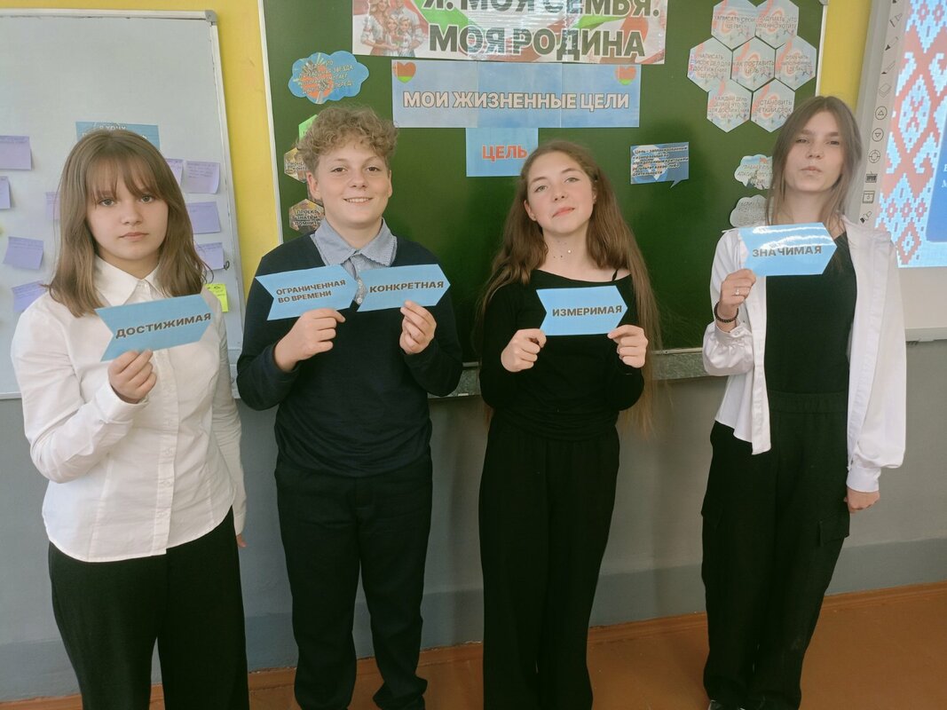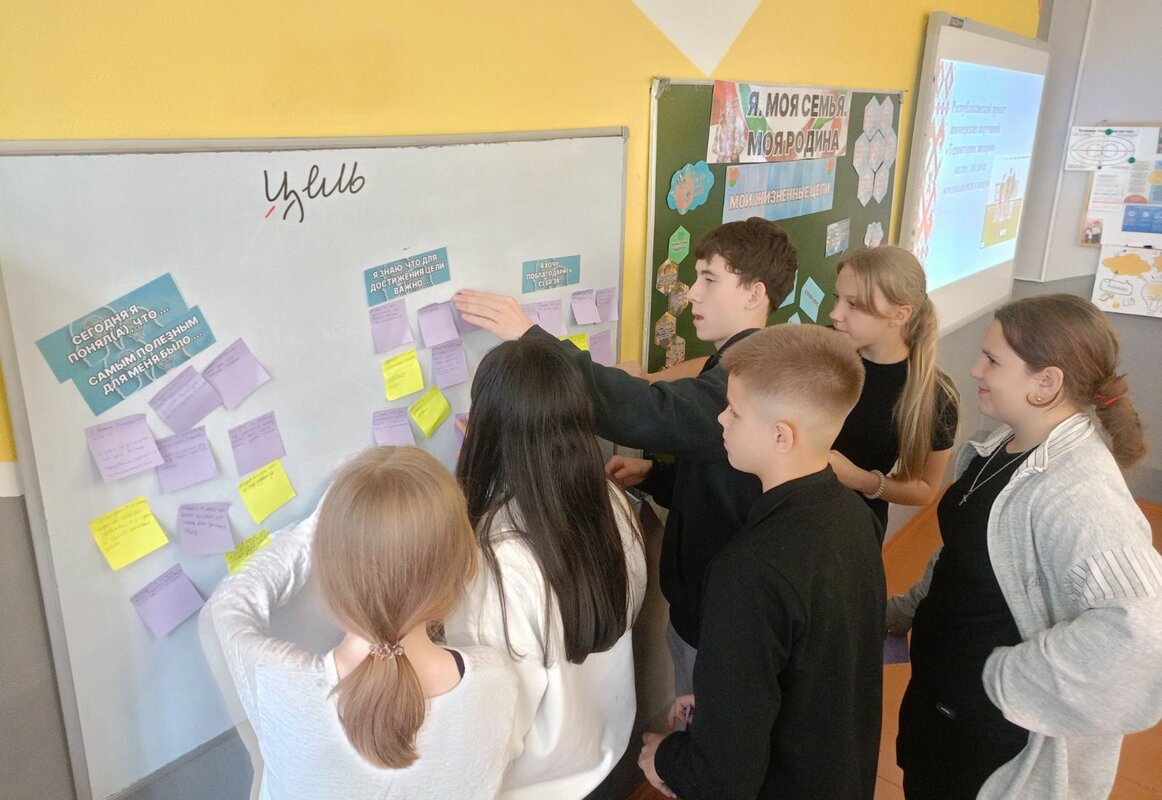 В 7 классе на прошел информационный час "Я. Моя семья. Моя родина". Ребята погрузились в обсуждение темы "Мои жизненные цели",  разбирались в том, что такое цель, как наметить план по её достижению и с какими трудностями можно столкнуться на этом пути. Также в рамках занятия школьники узнали о возможностях для самореализации в проекте БРПО "Территория лидеров".