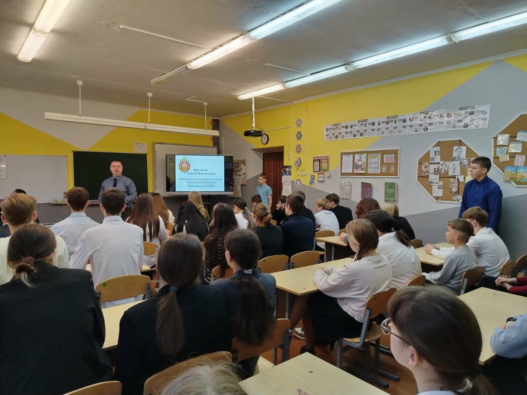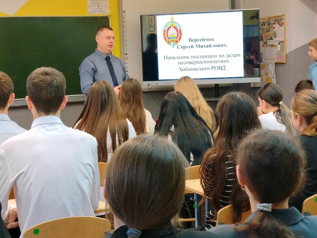 Профилактические занятия от начальника инспекции по делам несовершеннолетних Вергейчика С.М. и оперуполномоченного отдела по борьбе с наркотиками Кулаковского А.П. прошли для учащихся 8-11 Средней школы 2 г.Хойники.