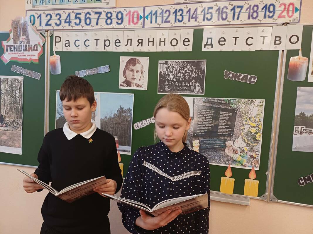 Ребята узнали о трагической судьбе мирных жителей, о целых деревнях, уничтоженных вместе с населением. Используя рассказы, иллюстративный материал, педагоги помогли школьникам осознать, что память о погибших – это неотъемлемая часть истории народа, их семей и малой родины.
