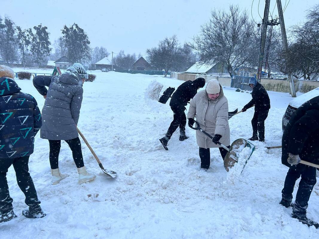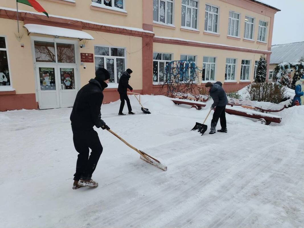 Ребята старших классов и работники второй городской школы бок о бок стали на борьбу со снежной стихией!