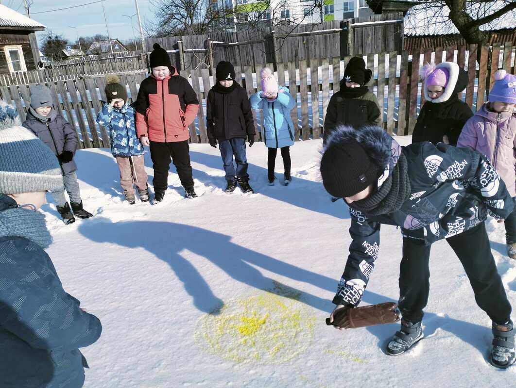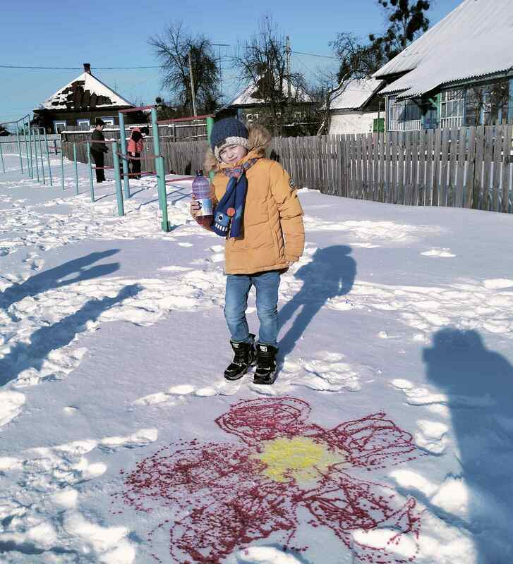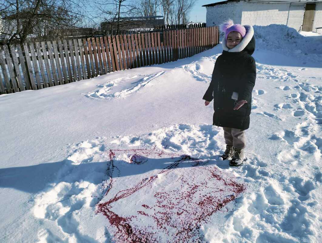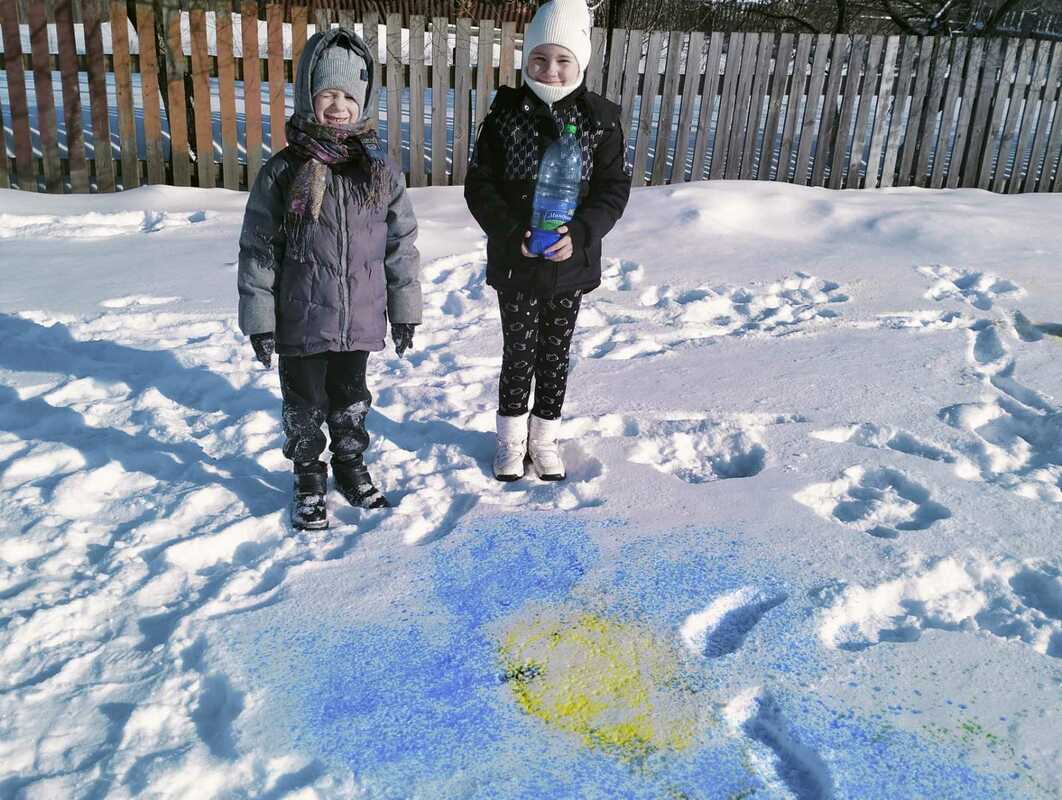 Сначала было искусство: вооружившись акварелью, дети превратили обычный снег в настоящую галерею. Такие рисунки недолговечны, но впечатления от них останутся надолго!