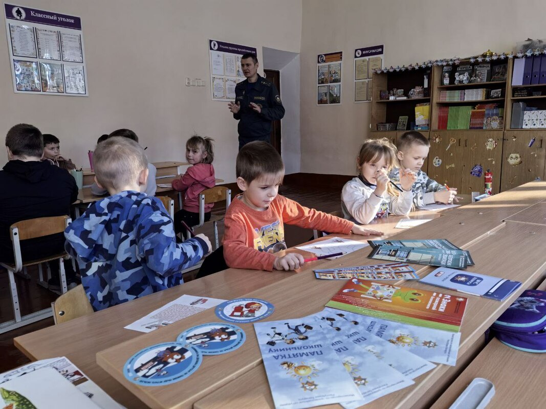 А потом пришло время серьёзных разговоров. Инспектор РОЧС Беспалый Олег Анатольевич провел урок противопожарной безопасности. В игровой форме ребятам напомнили о правилах поведения с огнём, номерах экстренных служб и важности осторожности.
