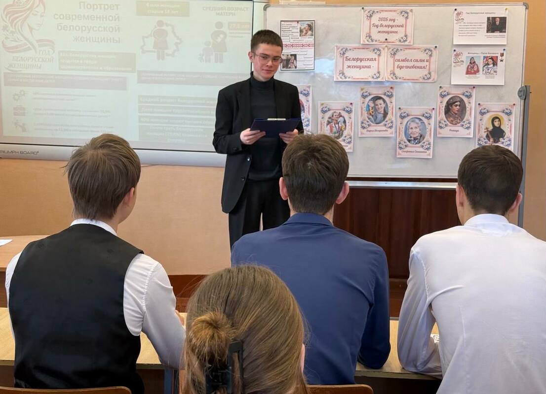 Урок был разделён на исторический и современный блоки. Учащиеся вспомнили великих дочерей белорусской земли: от Евфросинии Полоцкой до героинь Великой Отечественной войны. Особое внимание уделили современницам- женщинам-учёным, врачам, многодетным матерям и обладательницам звания «Герой Беларуси» (среди которых Дарья Домрачева и Марина Василевская) .