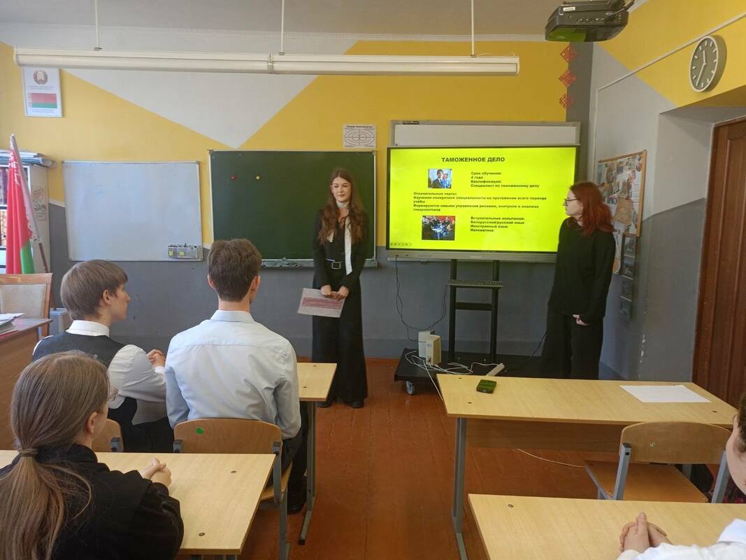 14.04.2026 для учащихся 10-11 классов проведена профориентация, которая помогла старшеклассникам разобраться в многообразии специальностей и востребованных профессий. Мероприятие включало тестирование и встречу с представителями Гродненского государственного университета.